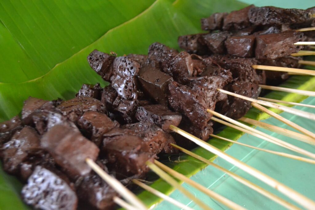 Continuing with the blood recipes, Betamax is a street food made from coagulated pork blood cut into small blocks, skewered, and grilled until slightly charred, it’s smoky, savory, and utterly addictive. The name comes from its rectangular shape, reminiscent of the old Betamax video tapes. Usually enjoyed with a dash of spicy vinegar, Betamax is a perfect snack while strolling through Filipino streets.